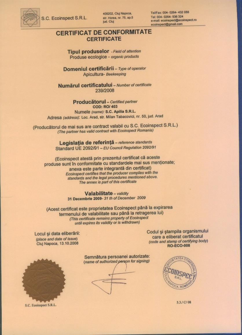 S.C. "Apilia" S.R.L. Arad, prima societate comercială din județul Arad care a beneficiat de finanțări Sapard în domeniul apiculturii, livrează la domiciliul d-voastră, produsele pe care le doriți!!!