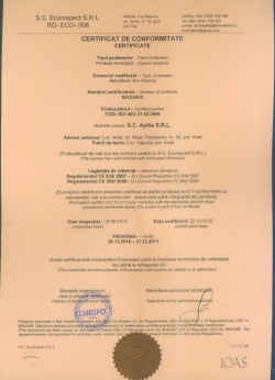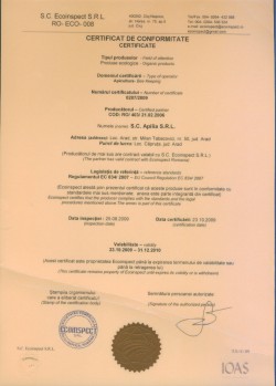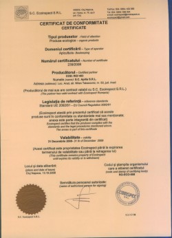societatea noastra este prima societate din judetul Arad (si pana in prezent singura) care este certificata ecologic de catre organismul de certificare "Ecoinspect".